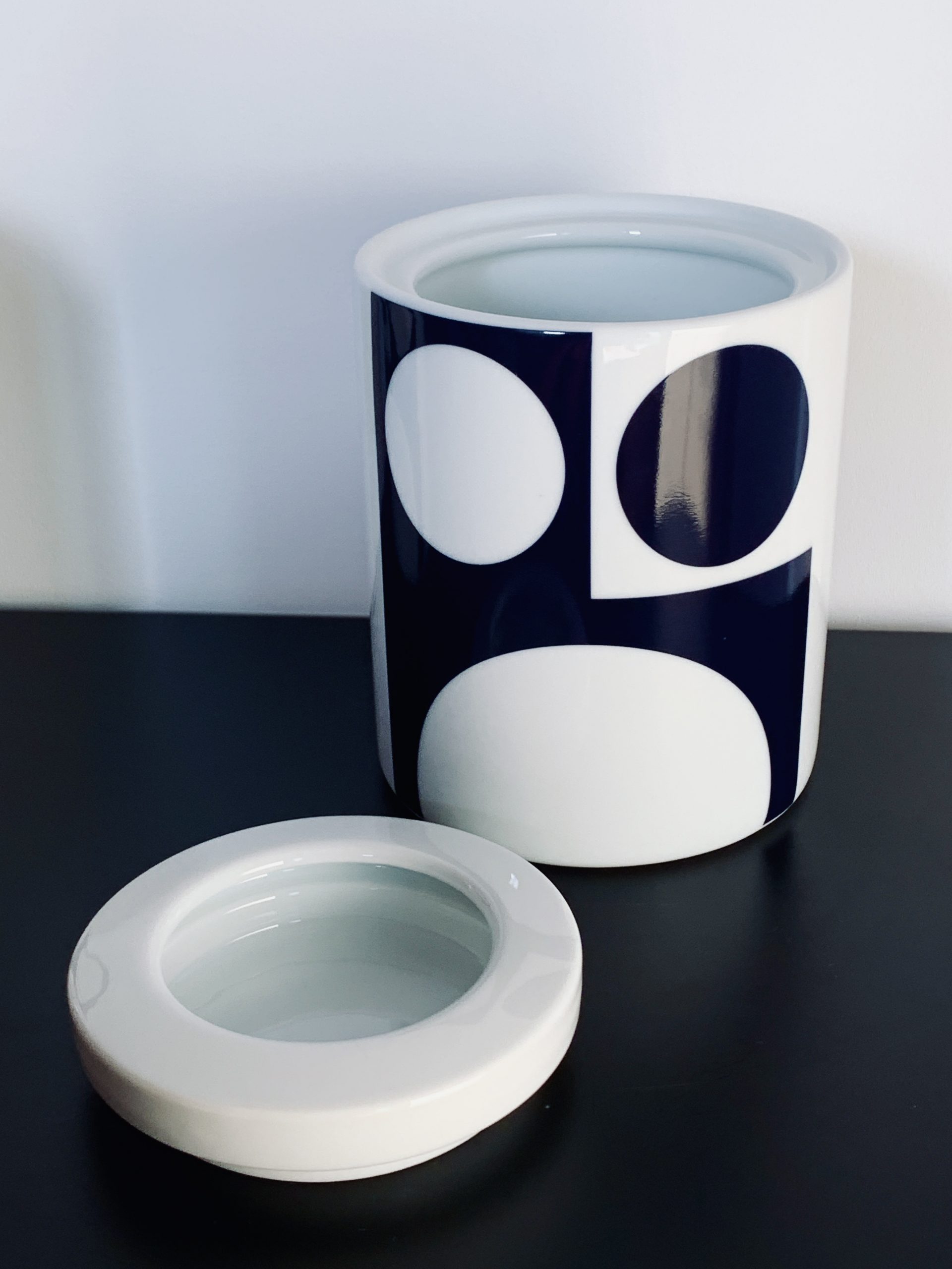 € 45,00Add to cartThis porcelain storage jar features the world famous graphic design ‘Geometri 1’ from 1960 by the Danish architect/designer Verner Panton. The Geometri design was the first to be used on textiles and won many international design awards. This decor makes this storage jar and all other items from the Panton series ‘design classics’, timelessly modern.