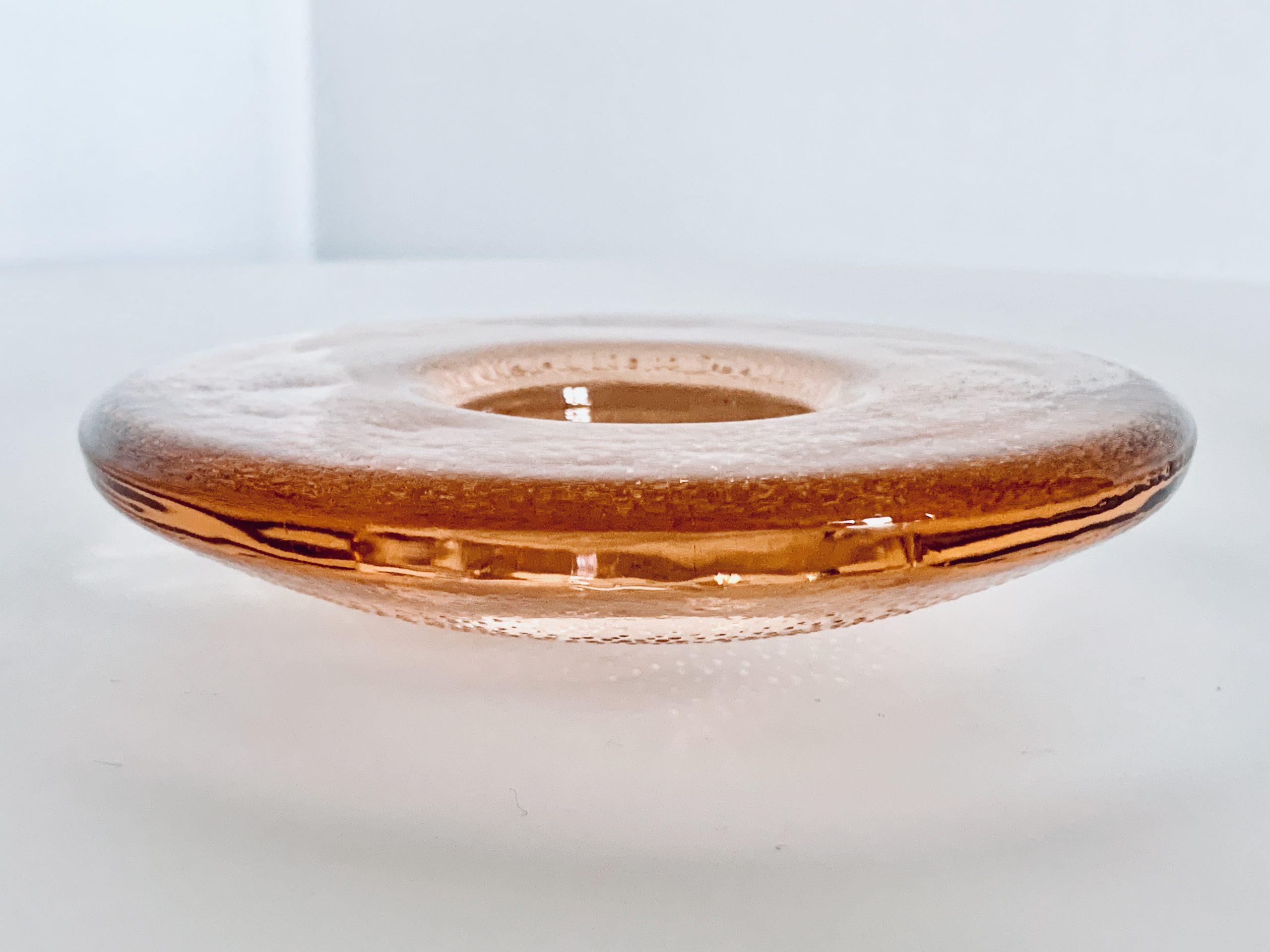 Deze prachtige waxinelichthouder is in goede staat, met lichte tekenen van eerder gebruik. De oranje kleur is vrij zeldzaam.